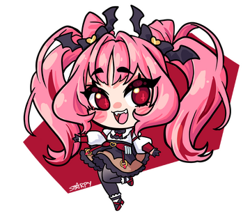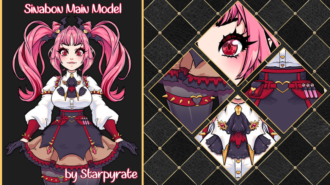 Sinabon is not your typical vampire. Instead of indulging in the taste of human blood, she has found a different way to satisfy her eternal craving. With a passion for baking, she uses her knowledge of alchemy to transform blood into sugar, the main ingredient for her bakery.Sinabon's "Sweet Fangs" Bakery had become quite the sensation in the small town of Moonshade. People flock from all corners to experience the delectable treats, most of them unaware of the secret ingredient that made her creations irresistible.Every night, Sinabon ventures into the depths of her alchemy lab, surrounded by ancient tomes and bubbling concoctions, to carefully perform this delicate ritual. With extreme focus and a bit of love, she transforms donated blood into crystalline sugar more fondly nicknamed, “Blugar”. This process allows her to sate her hunger for the vital substance while creating magical confections with unparalleled taste.With her success, she recently expanded the bakery in 2022 to include an arcade room and hired staff to keep up with demands. To help promote her bakery, Sinabon now streams part-time on Twitch as a Live2D Vtuber.